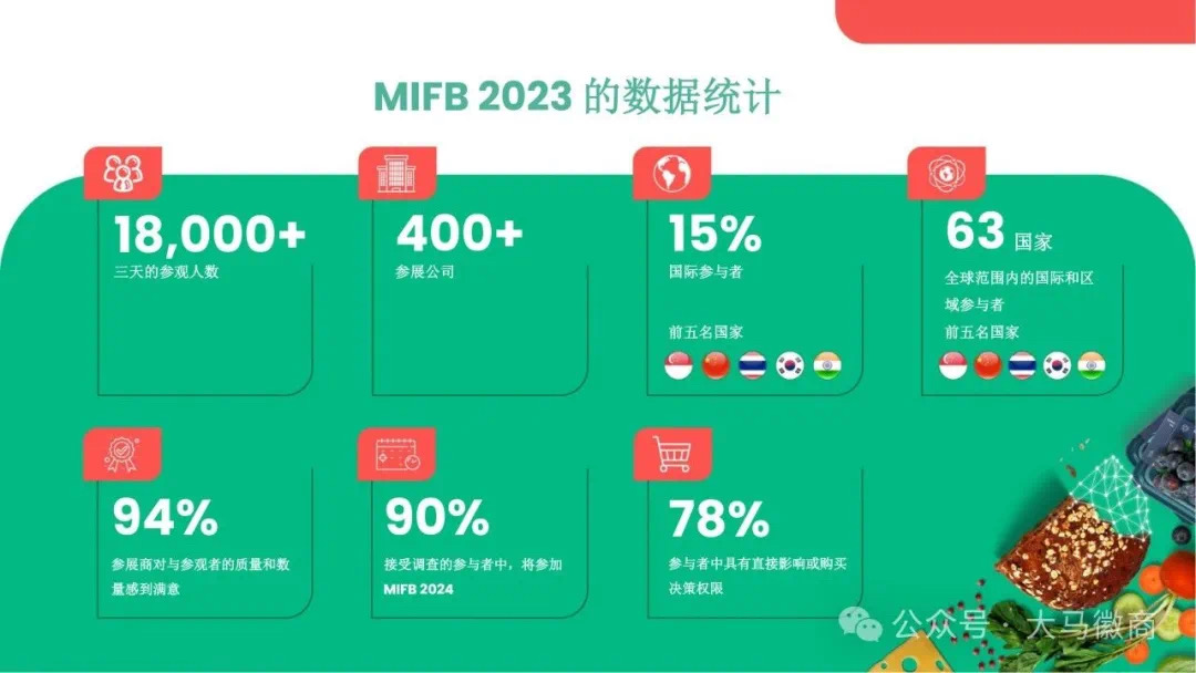 2024年7月17日—19日,馬來西亞第23屆國際食品飲料商貿(mào)展(MIFB)將在馬來西亞·吉隆坡會展中心 Hall 1- Hall 8開幕,作為大馬最大的食品展會,聚集了眾多的食品和飲料買家和供貨商。