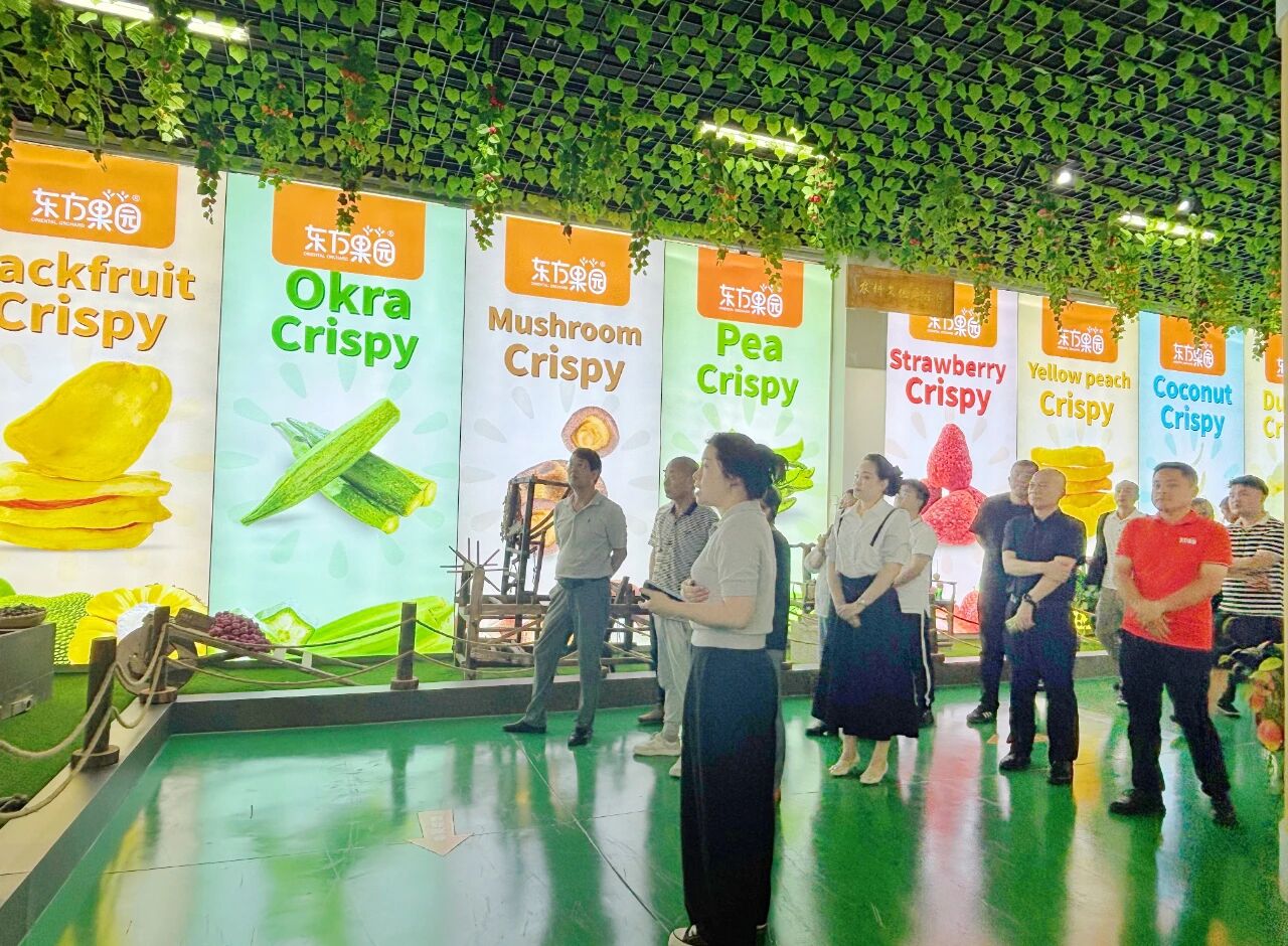 市場監(jiān)督管理局領(lǐng)導(dǎo)及志愿者們首先參觀了公司食品安全研學(xué)基地。這里不僅是知識傳播的平臺,更體現(xiàn)了東方果園對食品安全教育的持續(xù)投入。通過生動的展示與專業(yè)講解,大家對公司食品安全科普工作及果蔬脆生產(chǎn)工藝給予了認(rèn)可。在食安基地,志愿者現(xiàn)場品嘗了多款果蔬脆產(chǎn)品,并從專業(yè)角度提出了寶貴建議。