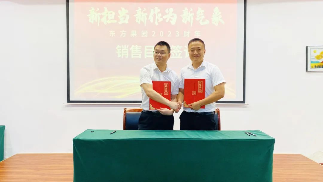 銷售任務目標責任書簽訂儀式中,商超部、大客戶部、特通部、中心市場、流通部和電商部代表簽訂了2023財年銷售任務書,明確目標,堅定信念,樹立信心,高效完成。