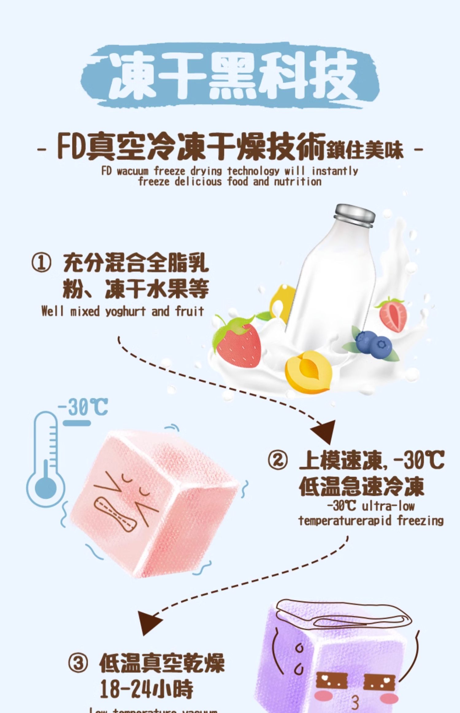 凍干酸奶塊,搭配牛奶更加美味。甄送好原料,采用風(fēng)味發(fā)酵乳,口感順滑,香醇濮郁。凍干黑科技,F(xiàn)D真空冷演干燥技布鎮(zhèn)住美味 -酸甜草莓味肆意彌漫!